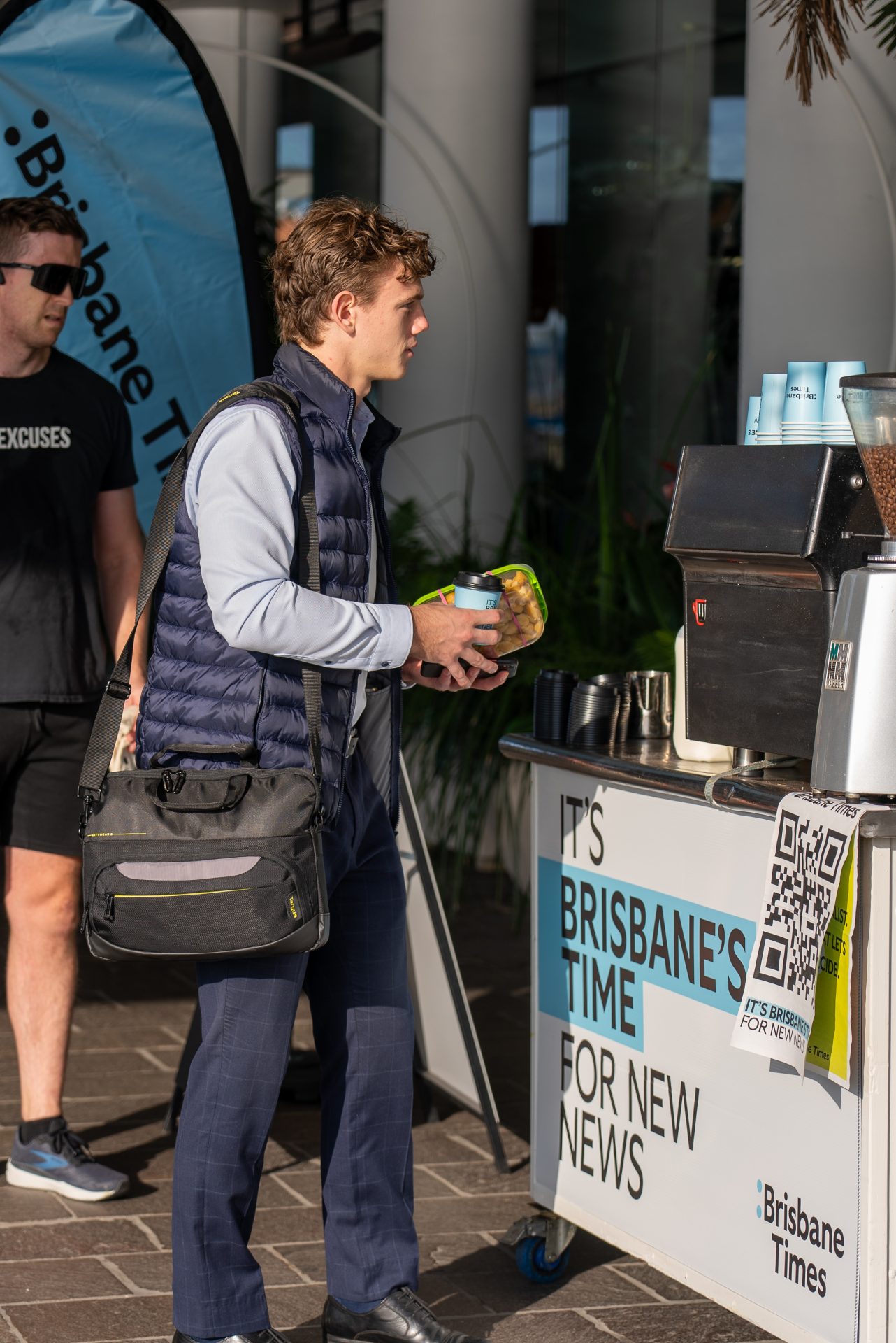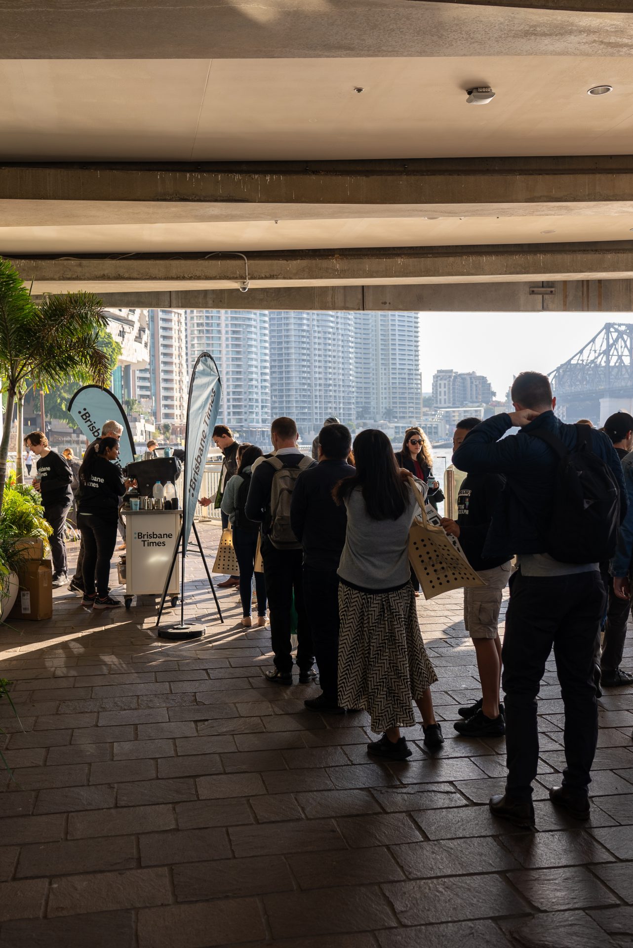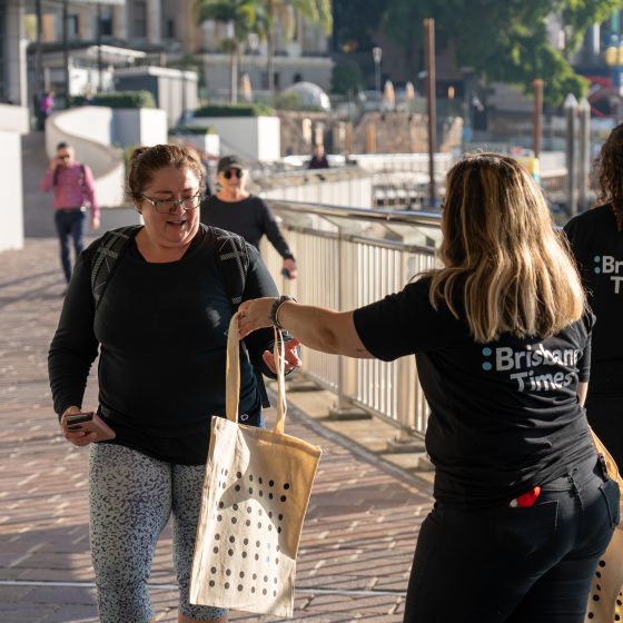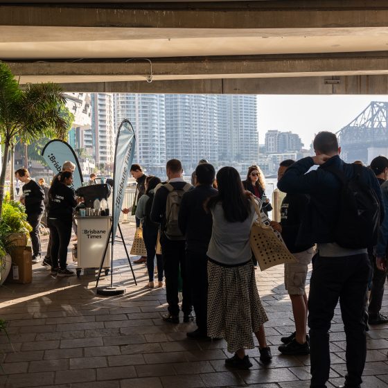 In the second phase, we strategically distributed complimentary coffee at specific locations along the QR code’s route, with a focus on engaging early-morning commuters within Brisbane city. To redeem their coffee, individuals were prompted to scan the QR code, contributing to our scan target and amplifying the impact of our activation. Additionally, we offered Brisbane Times branded tote bags containing further details about this local news brand, enhancing our outreach efforts.