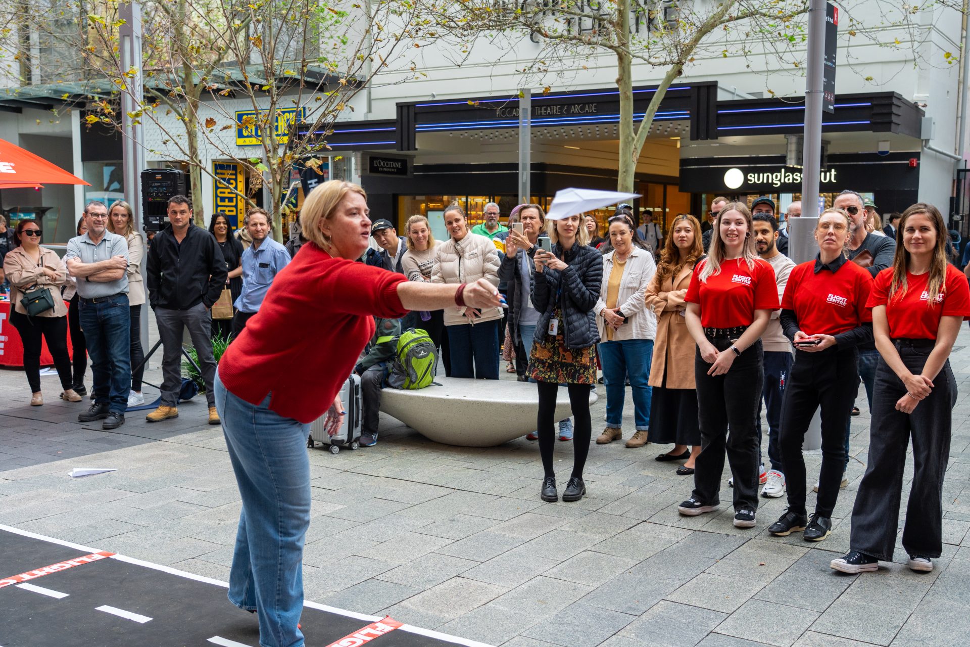 • We created a 4m tall backpack and suspended it from a crane in some of Australia’s most high traffic locations and created a paper airplane competition, with the winners each taking home a $20,000 holiday.